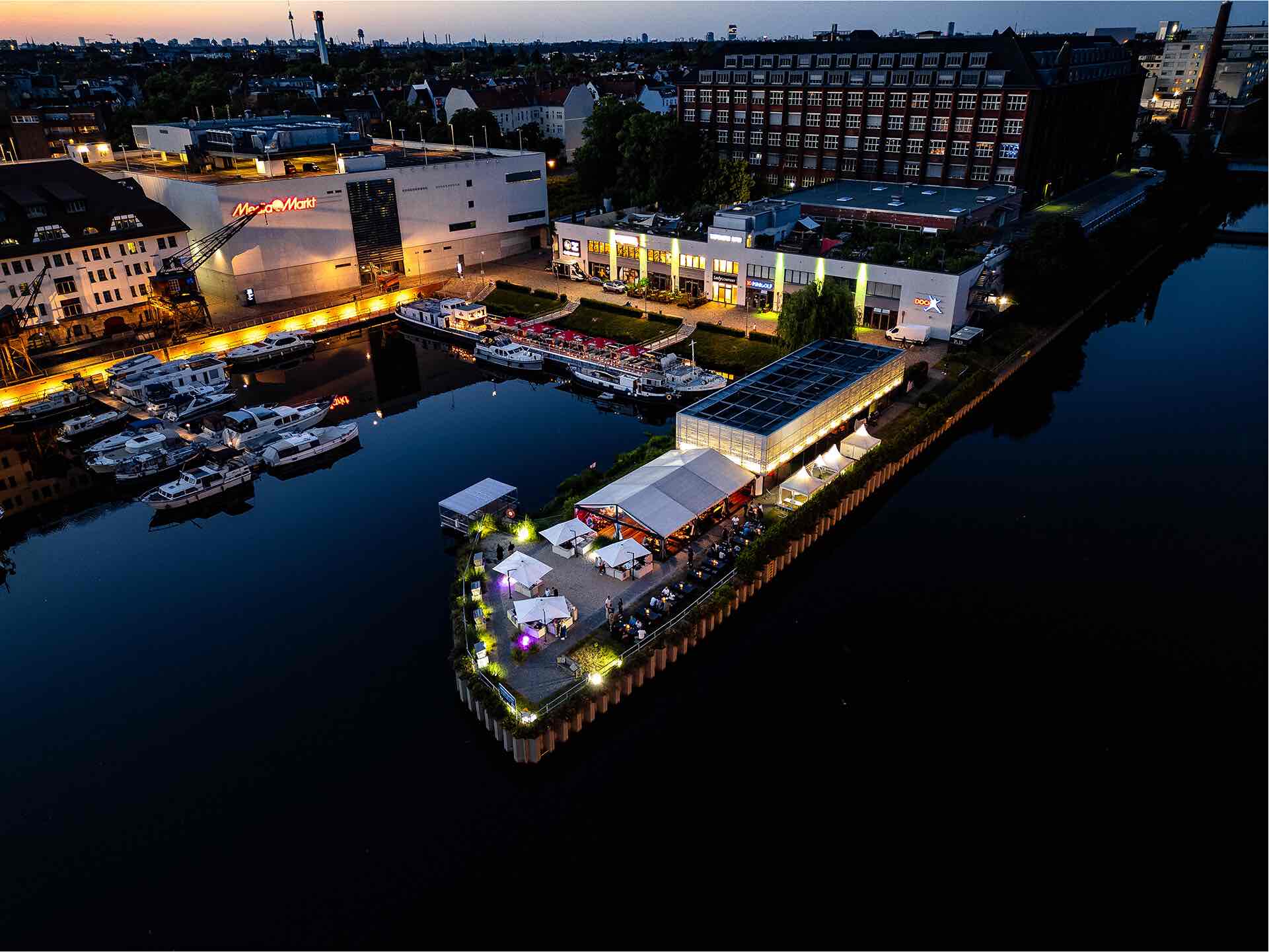 Ob Hochzeit, Sommerfest oder Firmenfeier – das PIER 13 kombiniert maritimes Flair mit urbanem Stil. Mitten in Berlin und doch wie auf einer Insel – das PIER 13 am Wasser im Tempelhofer Hafen
